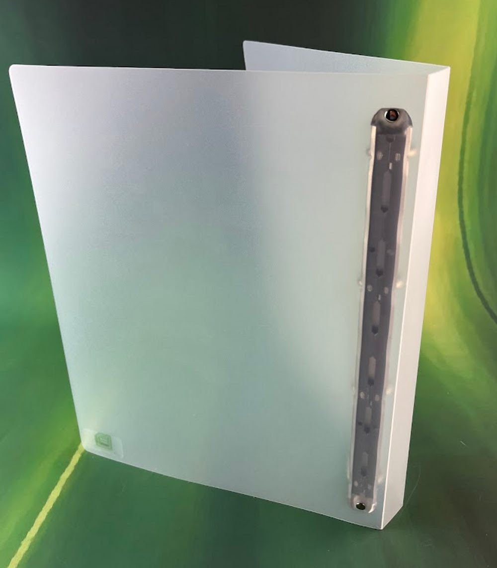 A4 polypropylene ring binder with a 4 'D' ring mechanism made using high quality premium polyprop sheet and a reliable ring mechanism. This binder is of generous proportions designed to take any punched portrait pocket of A4 or A5 capacity. The 10mm ring mechanism will hold around 100 sheets of 80 gsm (normal photocopy thickness) paper.
