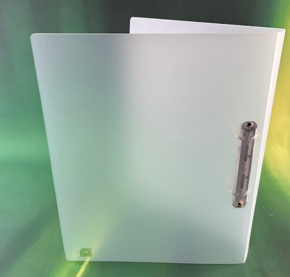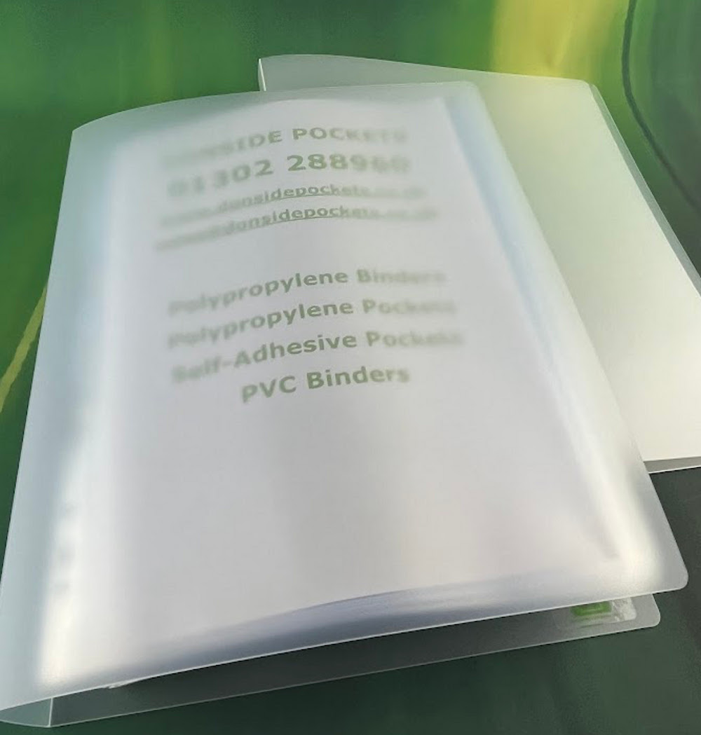 Screen Printing, Wire compressor bar, Spine label pocket and front cover pocket available as optional extras.
