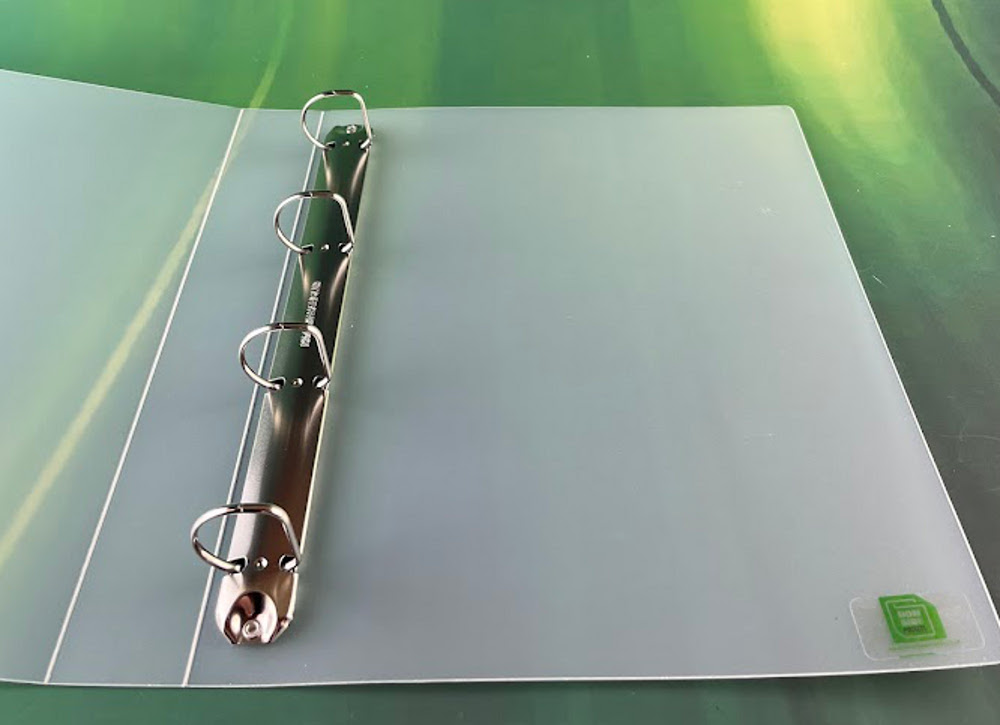 Screen Printing, Wire compressor bar, Spine label pocket and front cover pocket available as optional extras.