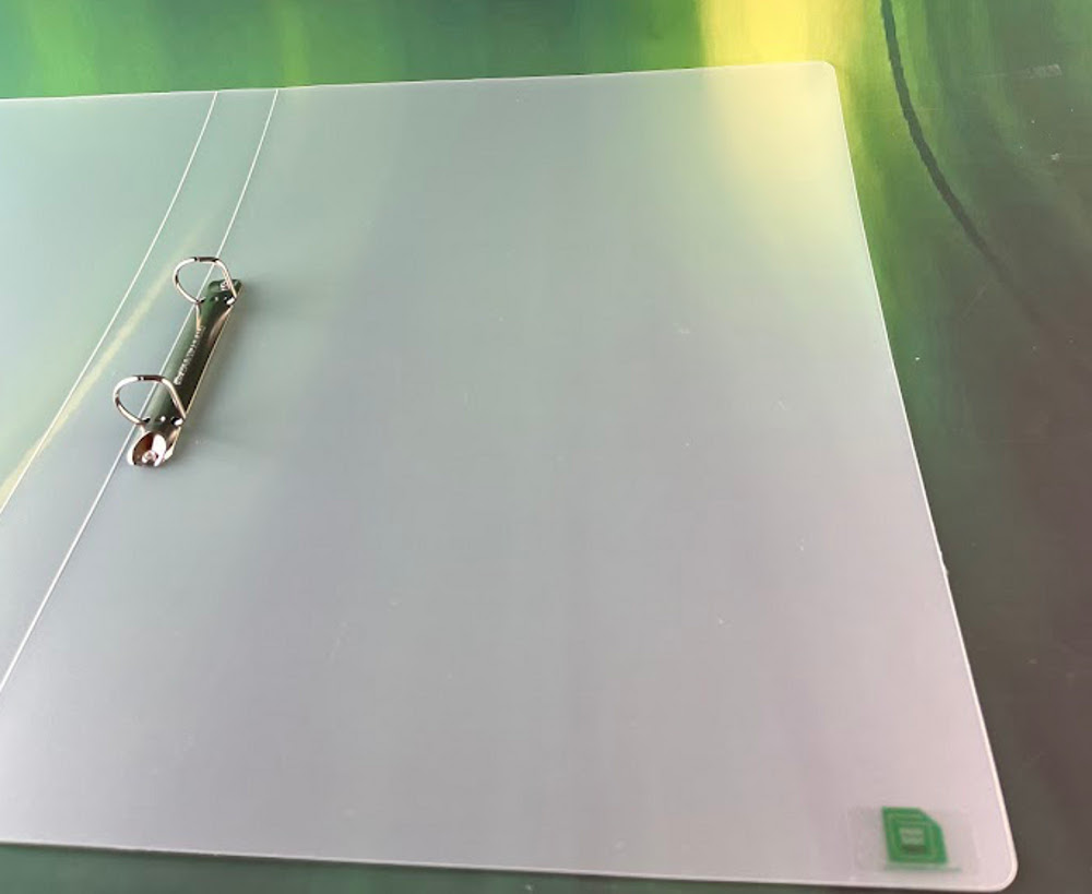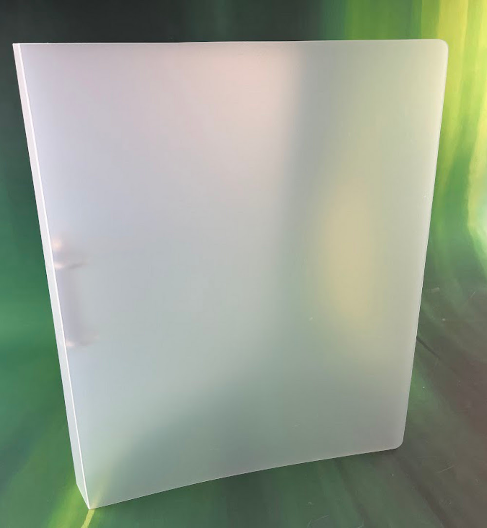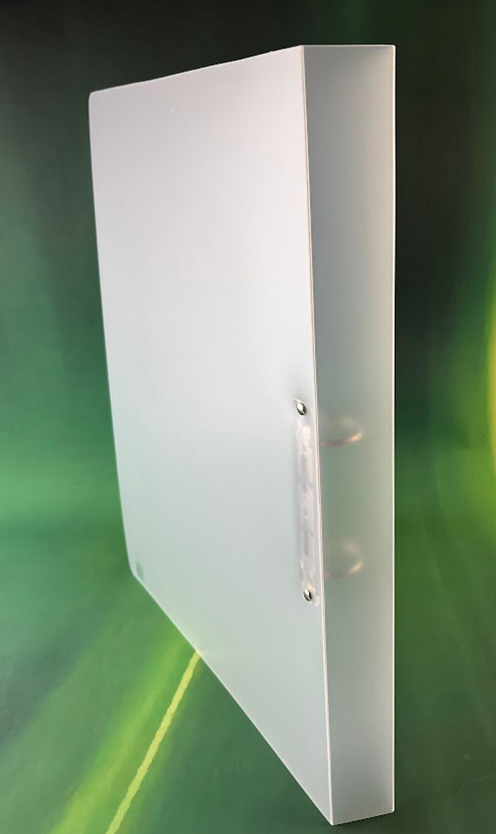 1,150 micron frosted polyprop. ring binders for A3 portrait. Large enough to take our WGP/A3 punched pockets for A3 portrait paper. 2 'D' rings at 80mm centres.
