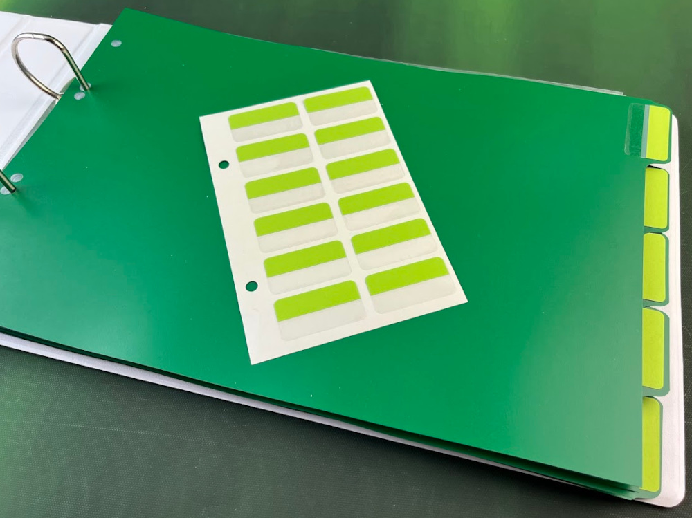 Each set of 5 dividers is supplied with 12 Self-Adhesive Index tabs which fit easily and neatly onto the tab of the divider pages and are suitable to write on. These are ideal for identifying what is in each section and are easily replaced should the contents of the section change