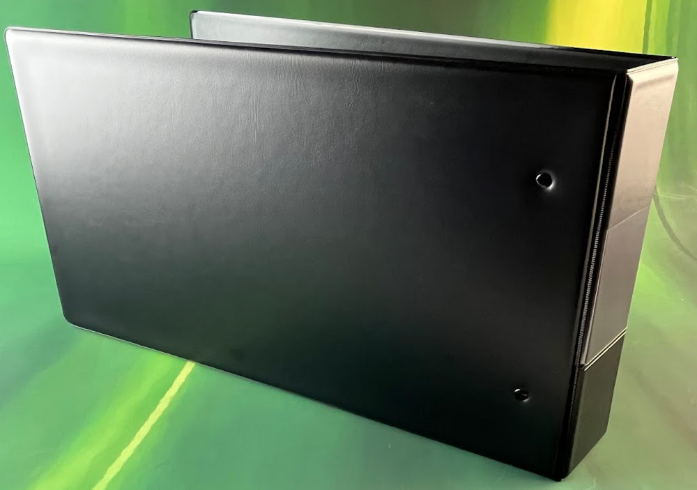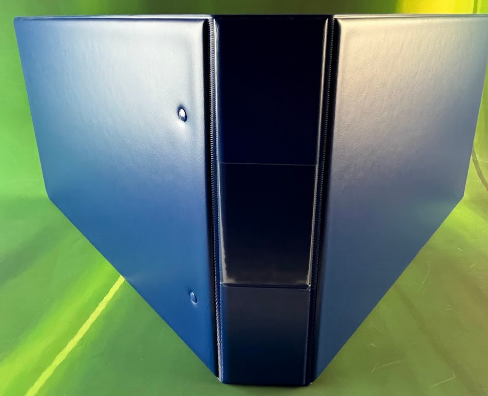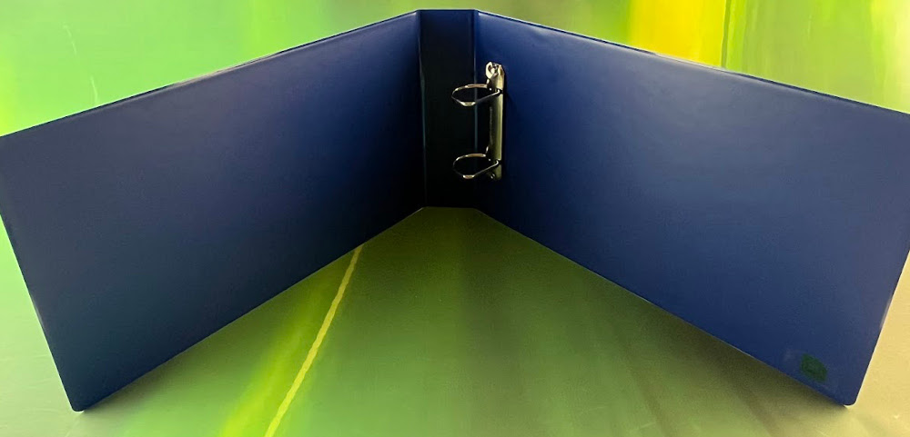 The binder lays flat when open and there is a small pocket for a name card on the spine. Ideal for medical records, client records and archival storage.