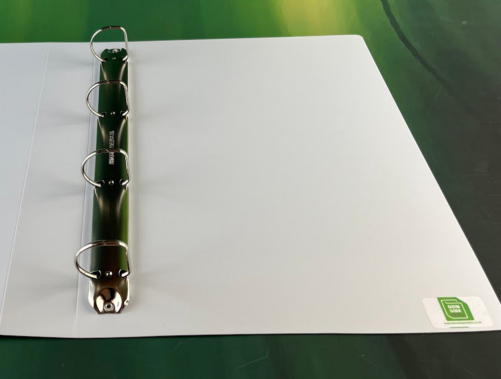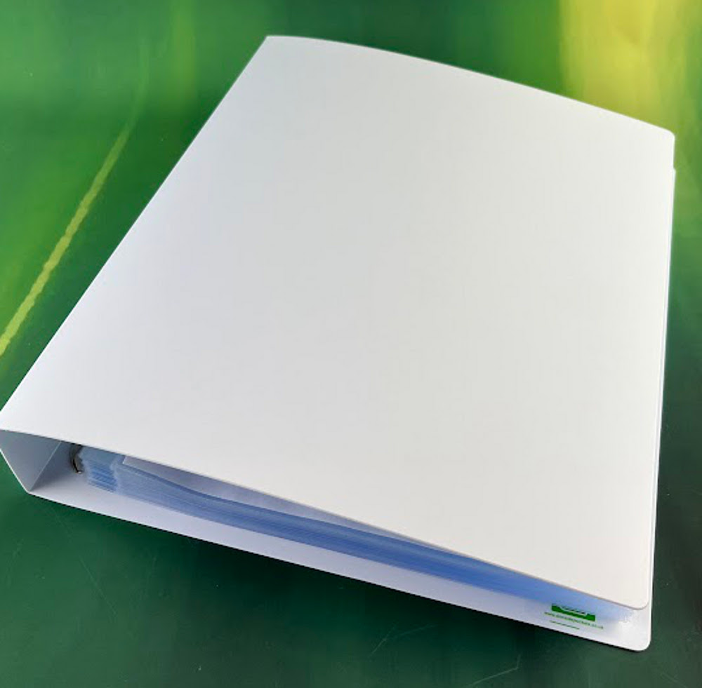 Screen Printing, Wire compressor bar, Spine label pocket and front cover pocket available as optional extras.