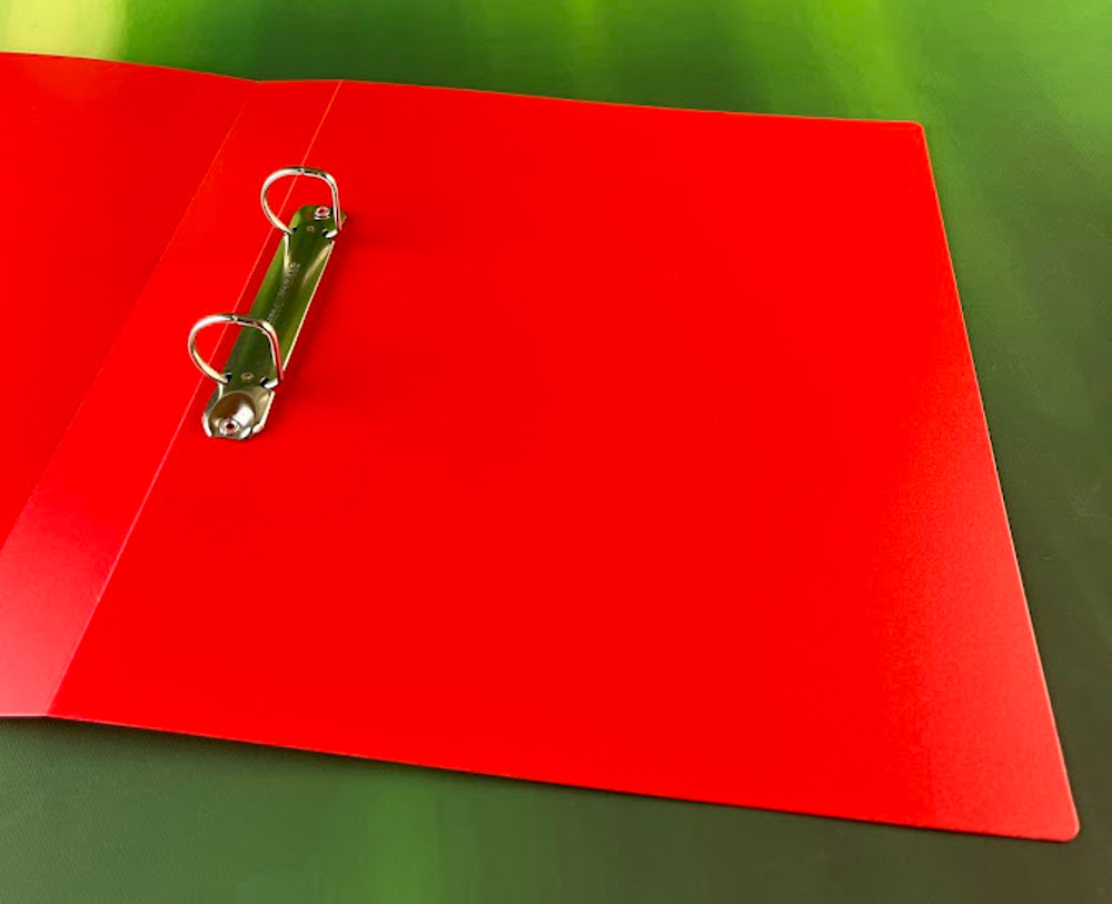 A4 Red plastic ring binder with a 2 'D' ring mechanism made using high quality polyprop sheet and a reliable ring mechanism. This binder is of generous proportions designed to take any punched portrait pocket of A4 or A5 capacity.